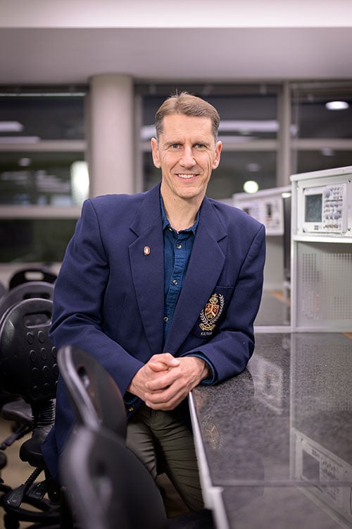 Since starting as a lecturer in the department in 2002, he has presented 11 different undergraduate modules to electrical, electronic, computer, mechanical, chemical, and metallurgical engineering students from first to fourth year in classes ranging between 30 and 630 students. He holds BEng and MEng degrees in electrical engineering and a doctorate in electronic engineering in the field of bioengineering. He is registered as a professional engineer and is a member of the South African Institute of Electrical Engineers. He serves as Deputy Function Head Undergraduate: Electrical Engineering, as the guardian lecturer for the final-year student class representatives, and as a member of the School of Engineering’s first-year curriculum design team. He is also a former head of residence of the Asterhof ladies’ residence.