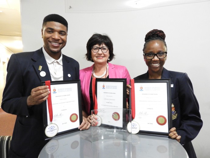 Dr Le Roux was named the Faculty House Guardian of the Year, highlighting her key role in supporting the Commercii team. This is a role she has fulfilled since the 2015/16 term, incorporating her life coaching skills to provide self-improvement talks and contribute to the development of the wider UP student leadership cohort. She closes this chapter on a high note as she handed over the Commercii guardianship role to the Albert Luthuli Centre for Responsible Leadership, who will mentor the 2018/19 Commercii team.