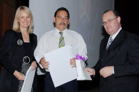 Prof Carolina Koornhof, Prof Coetzer and the Principal, Prof Calie Pistorius after Prof Coetzer was awarded a Laureate Certificate for Education Innovation.