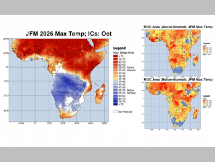 In general, probabilities of above normal rainfall increase in the summer rainfall region towards early and mid-summer. Also, below normal maximum temperatures are expected towards mid-summer in anticipation of an expected wetter than normal summer, except over the southern coastal areas and SW Cape where temperatures are likely to be above normal.