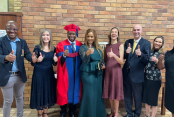 Dr Mafanedza Brutus Makumbi, a lecturer in the Department of Marketing Management, obtained his PhD in Tourism Management on 1 September 2025. Below is a photo of Dr Makumbi, his wife, and some of his colleagues in the Department of Marketing Management.