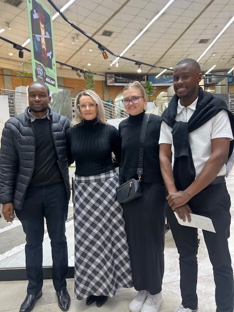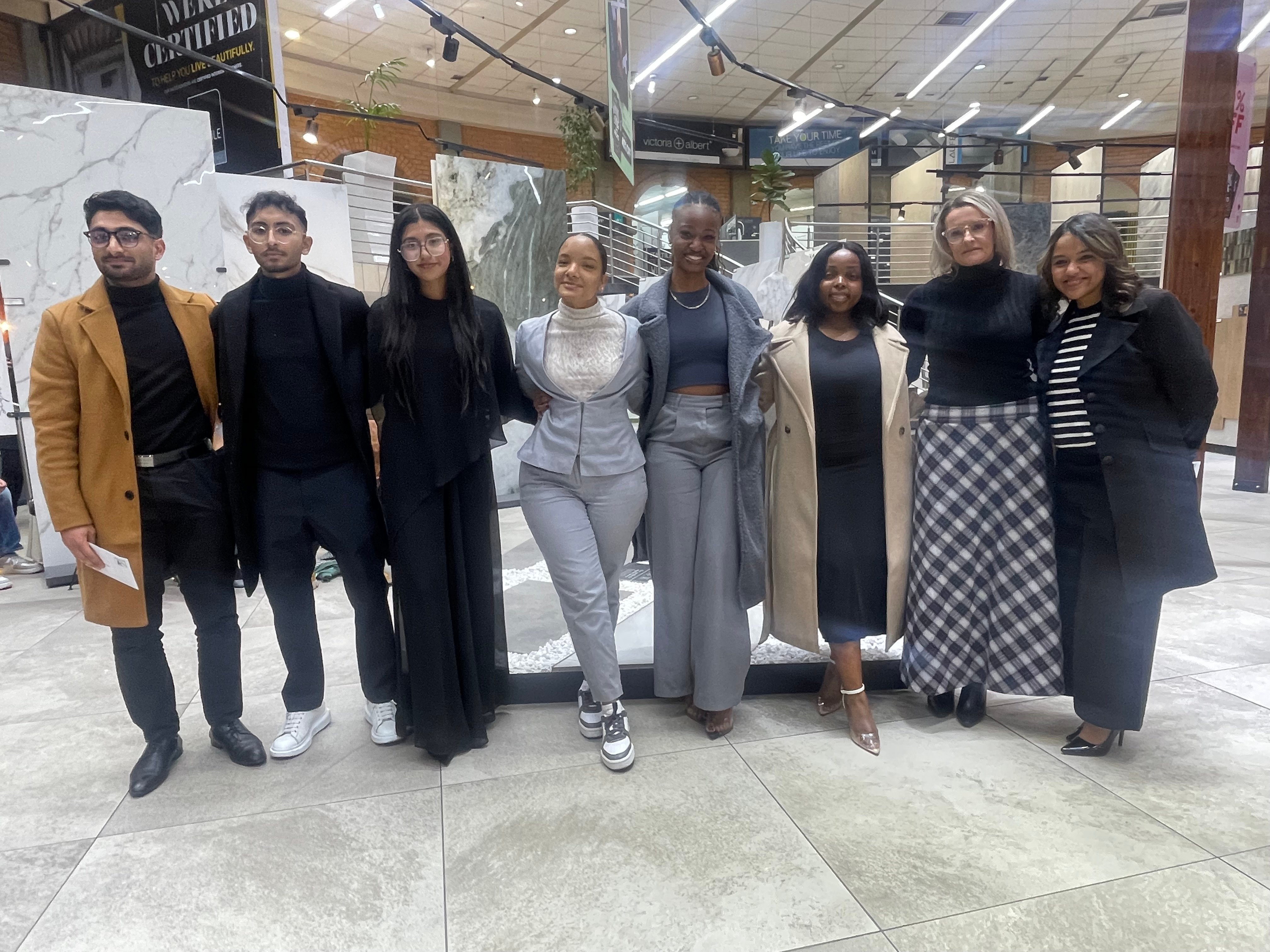 Team 5 Clique Gallery (Aaliyah Adrus, Yusuf Essat, Luqmaan Ismail, Kholo Malatji, Zanda Ndlazi, Tatum Oliver) with Nicole Russell (Italtile Marketing Manager) and Dr Jade Verbeek (Lecturer)