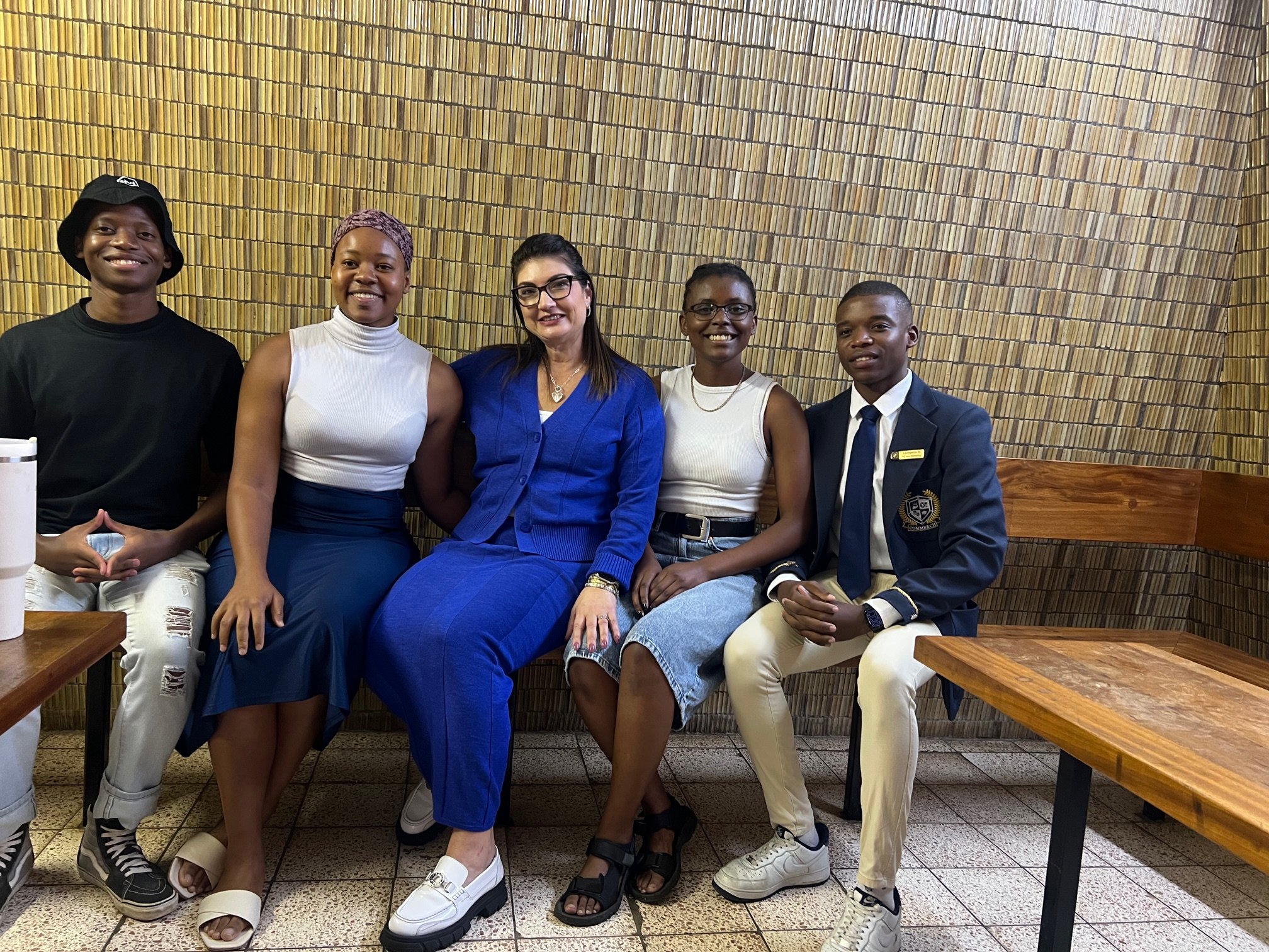 Team 4 The Tile Standard (Simbarashe Jaja, Elba Magani, Relebohile Mohlomi, Elizabeth Muchenje, Mackenzie Rimmell, Joshua Warmenhoven) with Nicole Russell (Italtile Marketing Manager) and Dr Jade Verbeek (Lecturer)