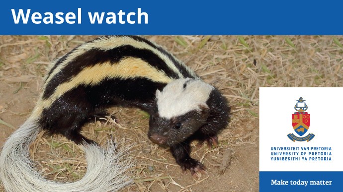 University of Pretoria (UP) doctoral candidate Kyle Smith is on a mission to find out all about one of Southern Africa’s most elusive small carnivores: the African striped weasel – and he needs your help. Smith is calling on members of the public and citizen scientists to help him by providing information about possible sightings of the animal anywhere in Southern Africa.