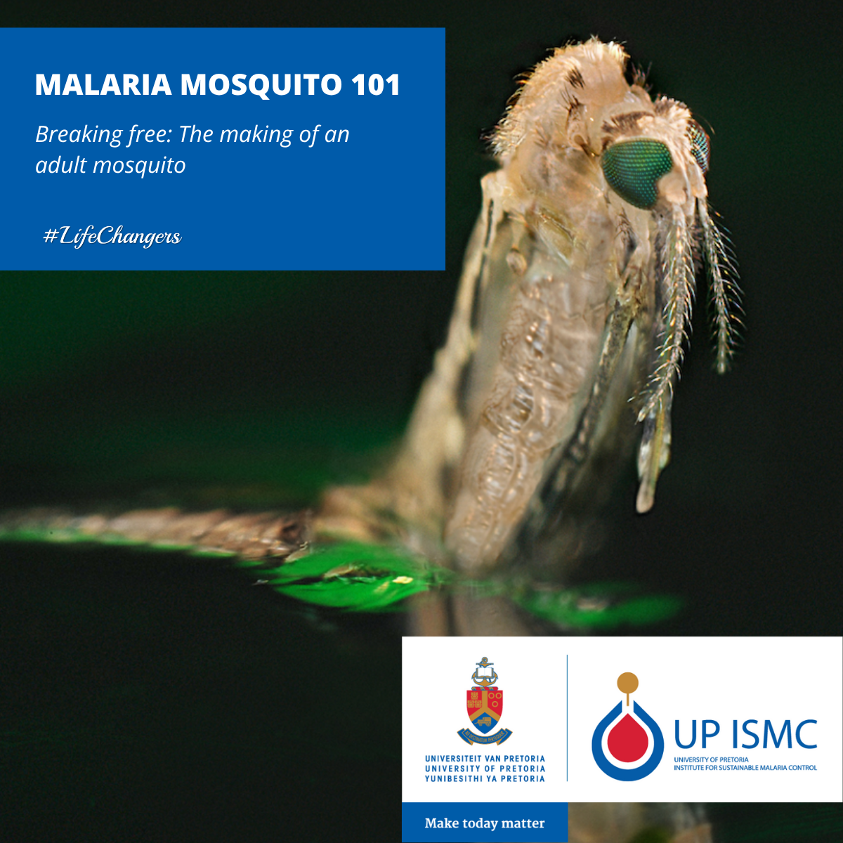 The world’s deadliest animal must undergo the delicate process of adult mosquito emergence before it can start “killing”. What is the purpose? A vulnerable stage in the mosquito’s life; from splitting the pupal casing to drying wings and preparing for flight. Once airborne, the mosquito's role in malaria’s life cycle begins, with the female able to seek a first host. This is the sixth article out of a series of eight. Click the image to learn more about the vulnerable killing machine.