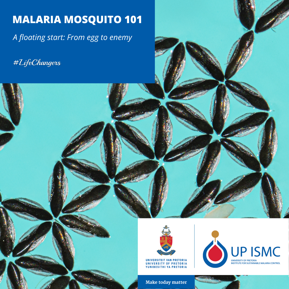 A female mosquito’s search for a blood meal ends with egg development. Where, how, and when do Anopheles mosquitoes lay their eggs? What do the eggs look like and what do they need to survive? Understanding the malaria mosquito eggs and egg-laying behaviour, is key to targeting breeding sites and preventing future generations of mosquitoes from taking flight. This is the third article out of a series of eight. Click the image to learn more about malaria mosquito eggs.