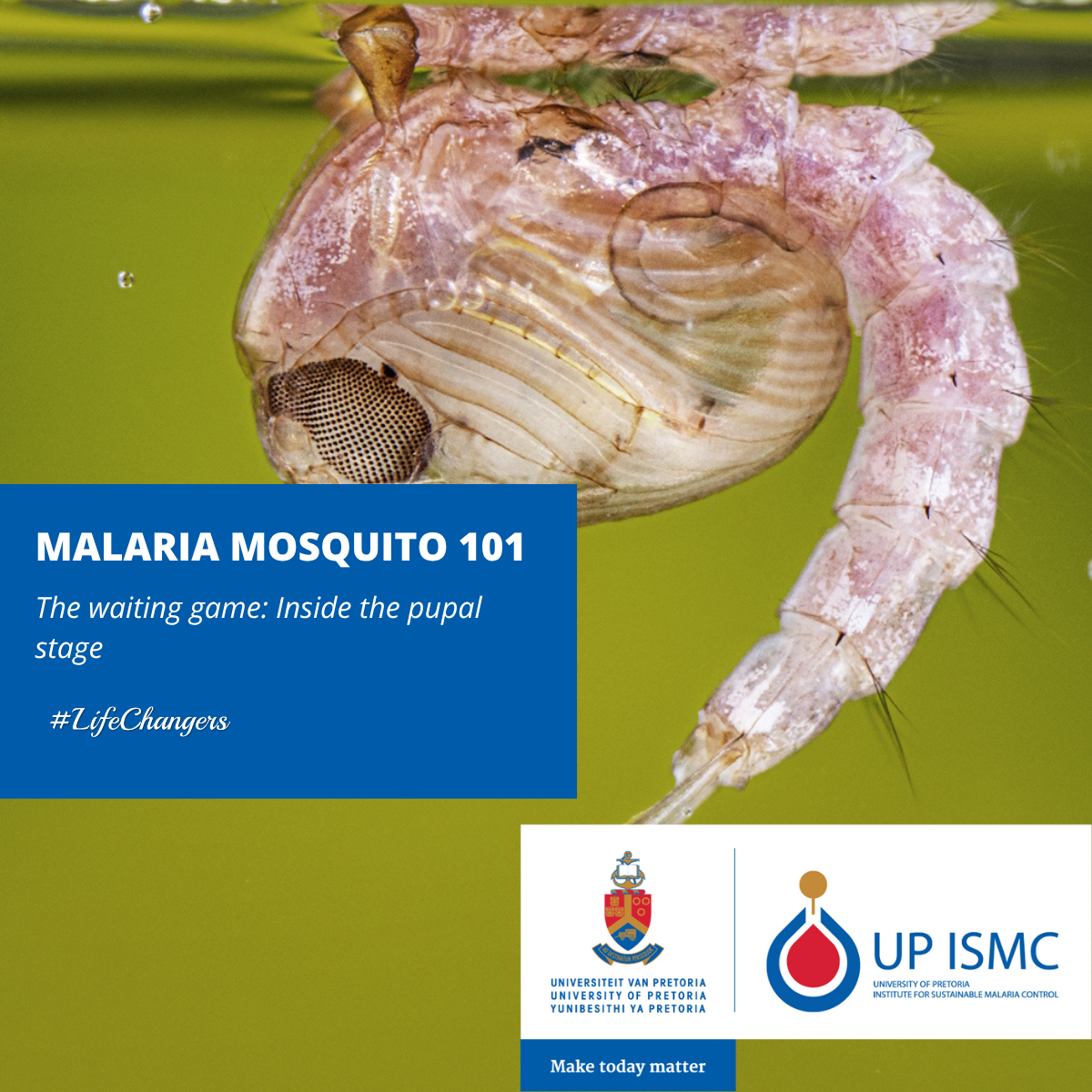 In the pupal stage, the mosquito undergoes its final transformation from water-bound larva to winged adult. Though they do not feed, mosquito pupae are still mobile and highly vulnerable. But what happens inside the pupal casing, how do environmental conditions affect emergence, and why is this brief stage crucial to malaria vector control. This is the fifth article out of a series of eight. Click the image to learn more about this drastic transformation in the mosquito life cycle.